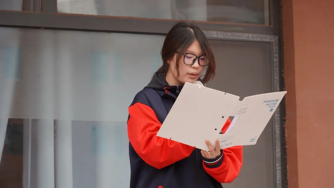 在主持人高敏杰同学的引导下,国旗队迈着整齐有力的步伐走向旗杆。那一刻,操场上静得只能听到脚步声与心跳声。全体师生肃立,向国旗行注目礼,嘹亮的国歌声回荡在校园上空。我们深知,这不仅是对祖国的敬意,更是对校园和谐的庄严承诺。 国旗下,学生代表麻家钿的发言真挚而坚定。她告诉大家,校园应该是知识的殿堂、友谊的港湾,绝不能成为欺凌的温床。当看到同学遇到困难时,我们不能做冷漠的旁观者,而要勇敢站出来,及时向老师和家长报告,用真诚与善意去帮助他人。 随后,高二美术六班的王聪培老师走上讲台,她的话语温暖而有力。她说,杜绝校园霸凌不是一句口号,而是要落实在每一件小事中,我们不能做残忍的“欺凌者”、不能做沉默的“受害者、不能做冷漠的“旁观者”。校园是我们共同的家园。它的美好,不在于没有矛盾,而在于我们能用善意和勇气去化解矛盾。 在热烈的掌声中,学校对近期的好人好事进行了表彰。高一美术三班的张琳涵同学,以及高一综合一班的陈羽涵、贾一涵同学,捡到校园一卡通后主动上交德育处,他们用实际行动诠释了诚信与善良的美好品质。 同时,优秀班级也受到了表彰,他们是高二年级美术一班,体育一班,舞蹈班;高一年级美术二班、美术五班、综合一班,王聪培老师为他们颁发了流动红旗。 最后,全体师生高举右拳,庄严宣誓:"与美相伴,向阳而生,逐光而行,未来可期。华唐必胜,华唐加油!"这誓言不仅回荡在操场上,更深深烙印在每个人的心中。 升旗仪式虽然结束了,但我们的行动才刚刚开始。让我们从自己做起,从现在做起,用爱与尊重驱散阴霾,用团结与勇气守护每一个纯真的心灵。杜绝校园霸凌,让我们的校园永远充满温暖与希望!