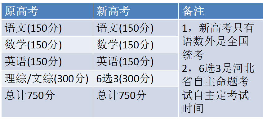 新高考与原高考的分值变化